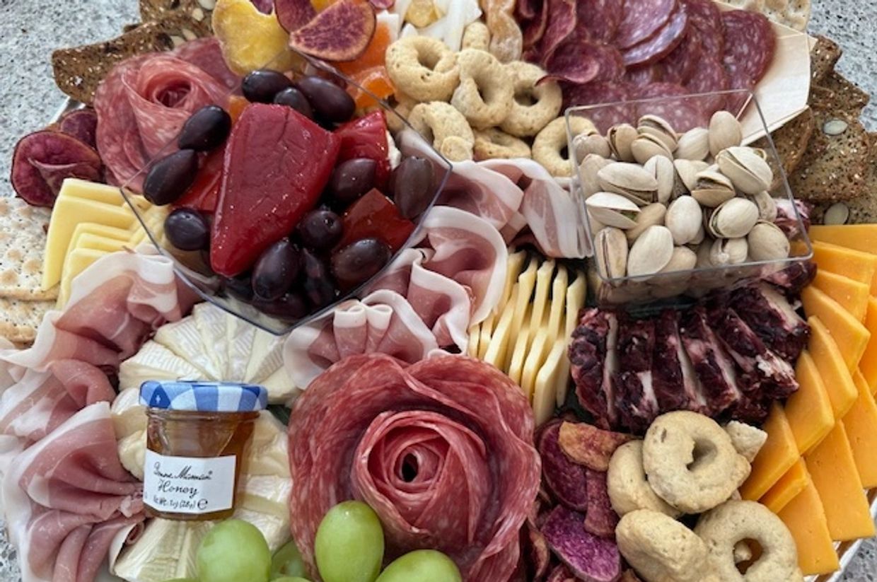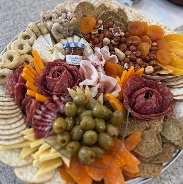 Freshly sliced cured meats accompanied by specialty cheeses, olives, gourmet crackers, dried fruits and many more...